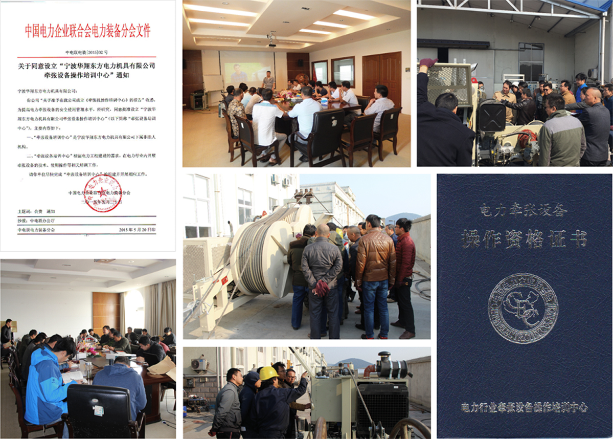 宁波华翔东方电力机具有限公司牵张设备操作培训中心,根据中国电力企业联合会电力装备分会《中电联装[2015 ] 02号文件》批准成立。 中心对张力架线施工中涉及的牵张设备进行系统的理论与实践操作培训,学员可掌握设备操作及维护保养的基本知识。对考核合格的学员颁发全国通用的 《电力行业牵张设备操作资格证书》,为各送变电及从事张力架线的施工单位输送合格的牵张设备操作人员。