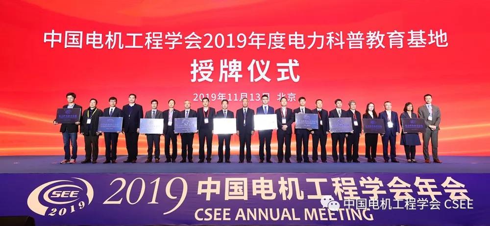 开幕式上举行了颁奖授牌仪式,2019年顾毓琇电机工程奖、2019年度中国电力科学技术奖、2019年度中国电力科技人物奖、2019年中国电机工程学会标准贡献奖、2019年中国电机工程学会优秀论文奖、2019年中国电机工程学会年会优秀论文奖、第十二届“中国电机工程学会杯”全国大学生电工数学建模竞赛奖在会上隆重颁发,36家电力科普教育基地获得授牌。