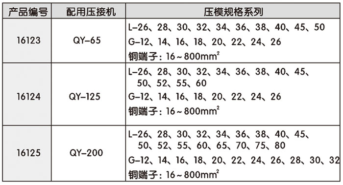 • 压模规格指铝(L)或钢(G)压接管的外径或铜导线的截面积;