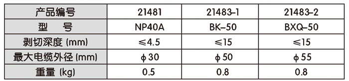 • 其中BK-50还能剥切电缆中间段的绝缘层。