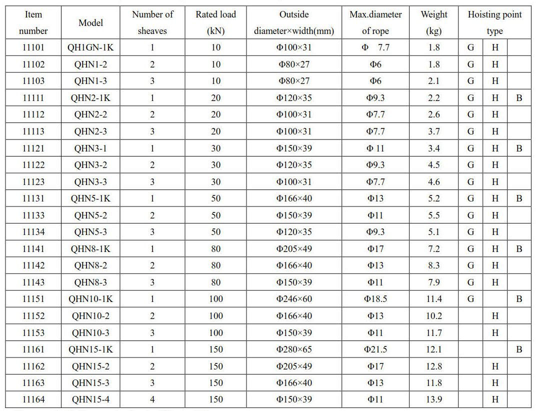 • the single sheave hoisting tackle is open style.