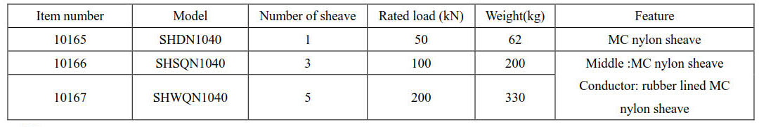 • Dimension of block ( outside diameter× root diameter × sheave width) Φ1040×Φ900×125(mm).