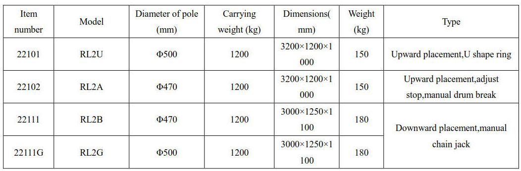 • to convey concrete poles on pavement ,the pole is placed above the car frame if it is upward placement type and held by two manual chain jacks under the car frame.